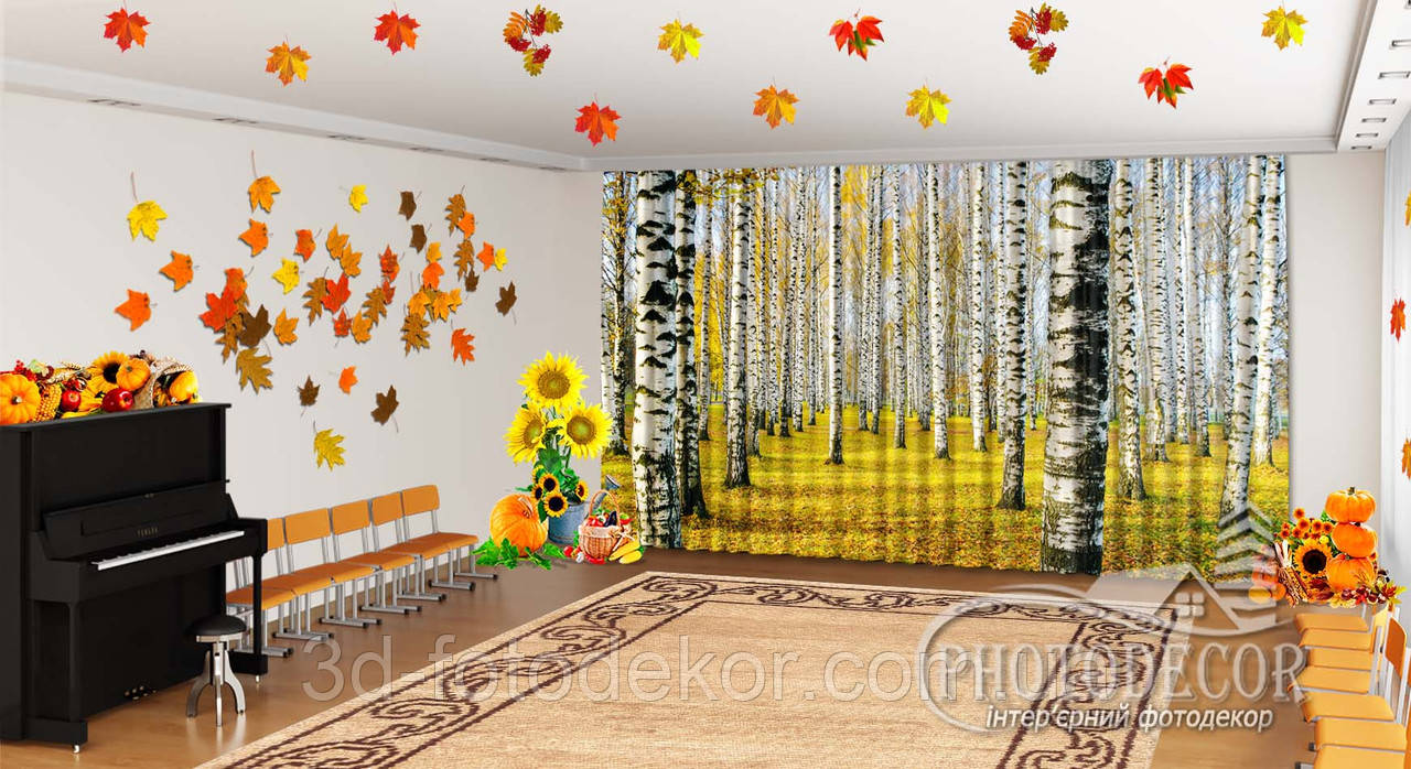 Осінні Фото Штори в дитячий садок "Березовий гай восени" - Будь-який розмір! Читаємо опис!